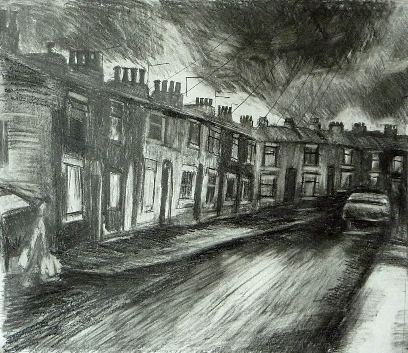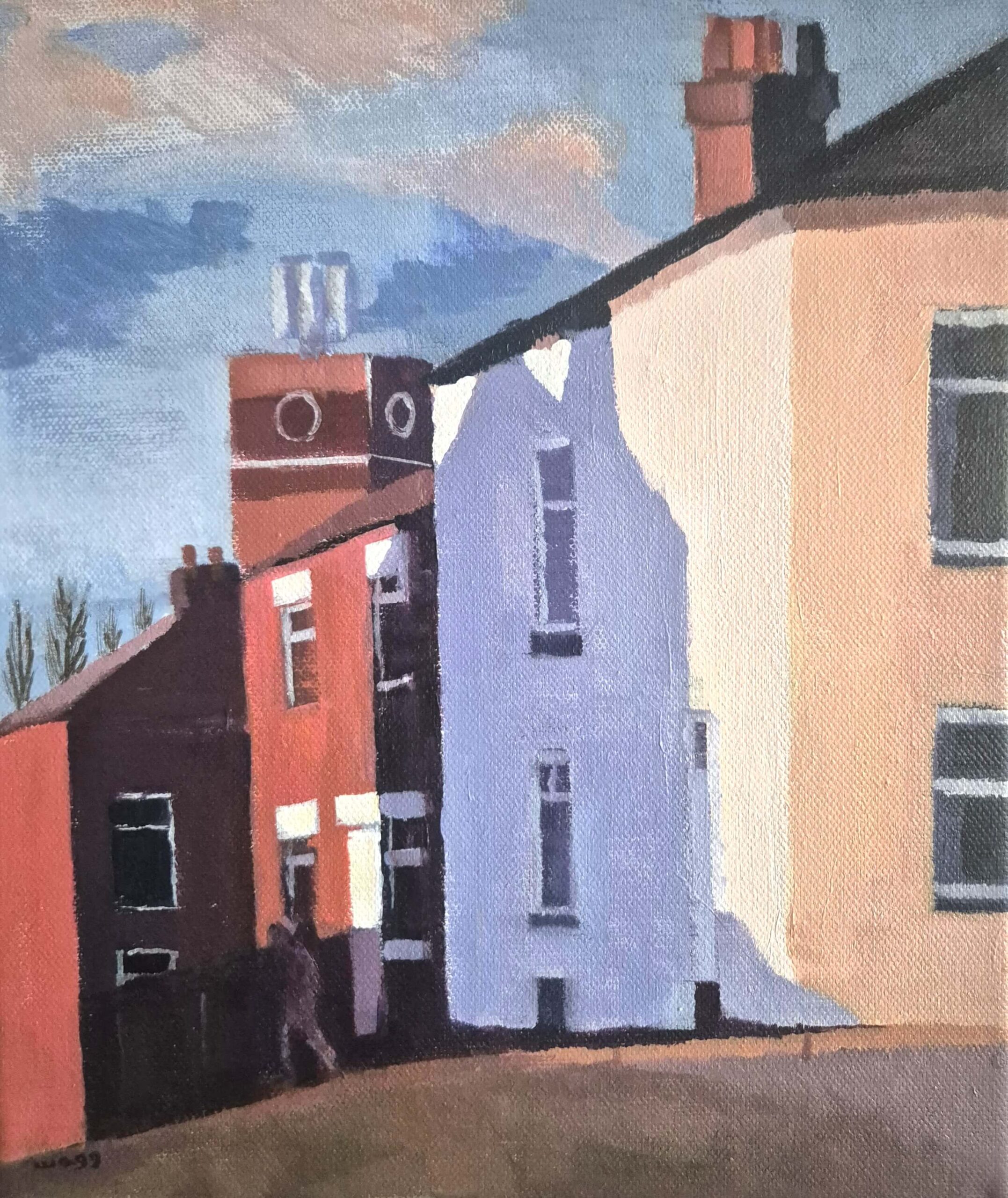 Artwork is of the urban North, and UK coastline. Teaches art at Aquinas College, has a studio is in Stockport